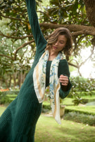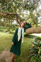 Silk scarves are this season's most coveted piece, and the Maia Scarf is a perfect example. Rich and indulgent, it showcases a gorgeous seasonal print that complements any outfit. With a wide range of styling options, you can wear it loosely, tie it as a scarf, use it as a head wrap, cinch it around your waist to enhance your silhouette, fashion it as a bow in your hair, or wrap it around your purse handles. The styling possibilities are endless!