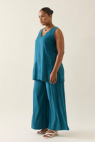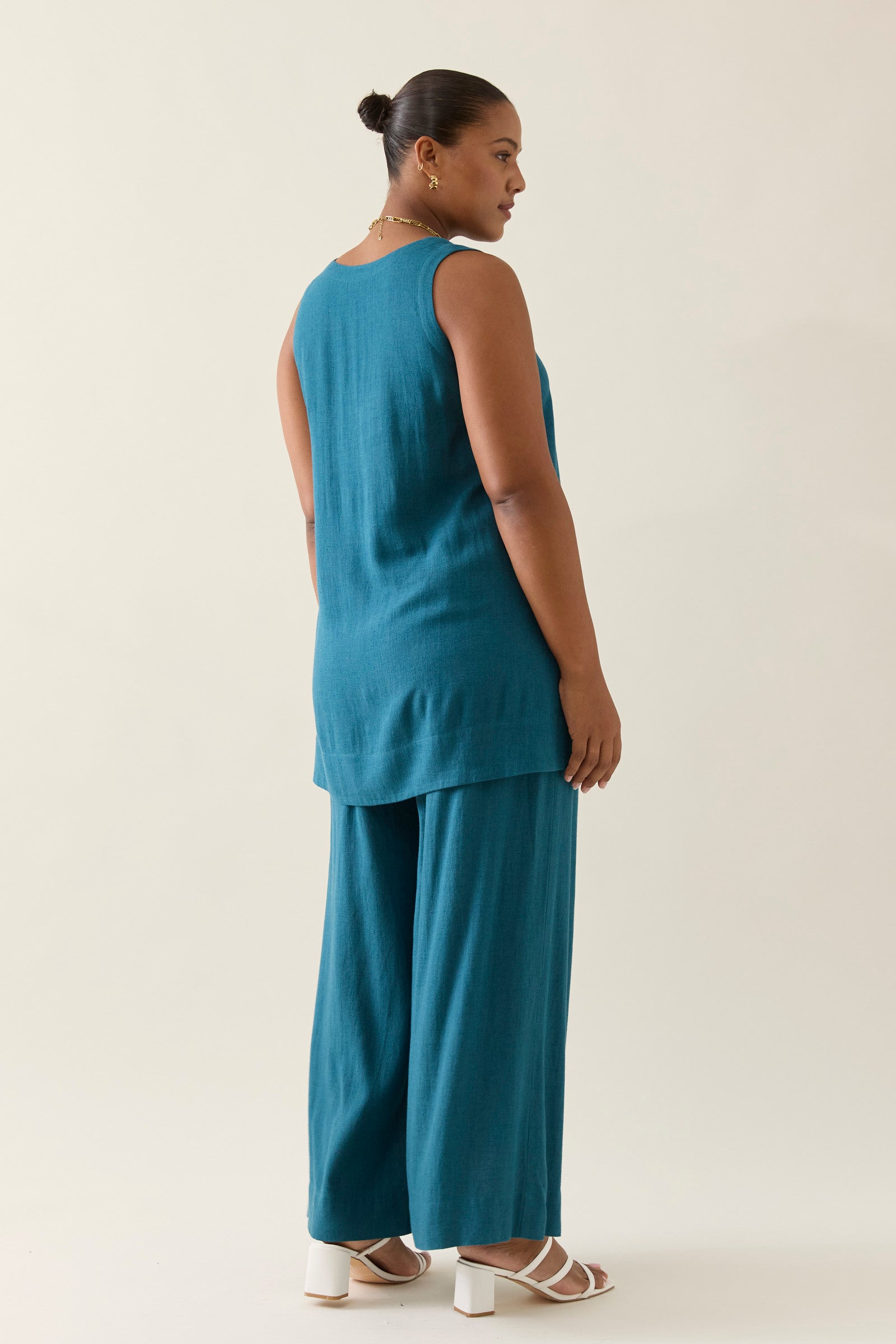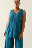 A versatile tunic that can be worn as a top or dress. Designed in a breathable linen blend with a reversible neckline—boat neck or V-neck—offering multiple styling options. Finished with side pockets for added ease.