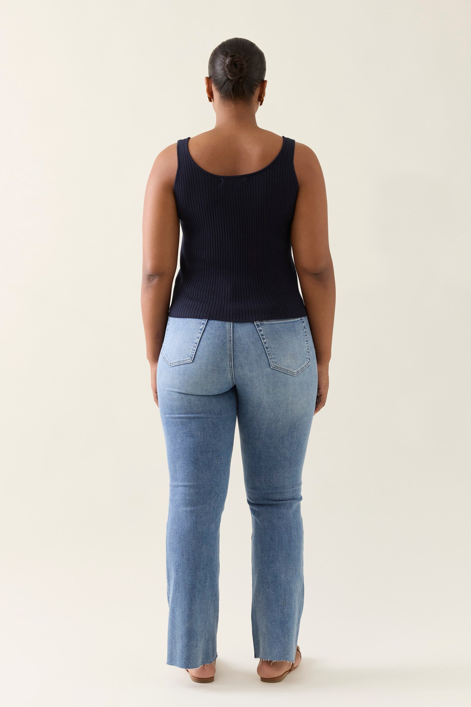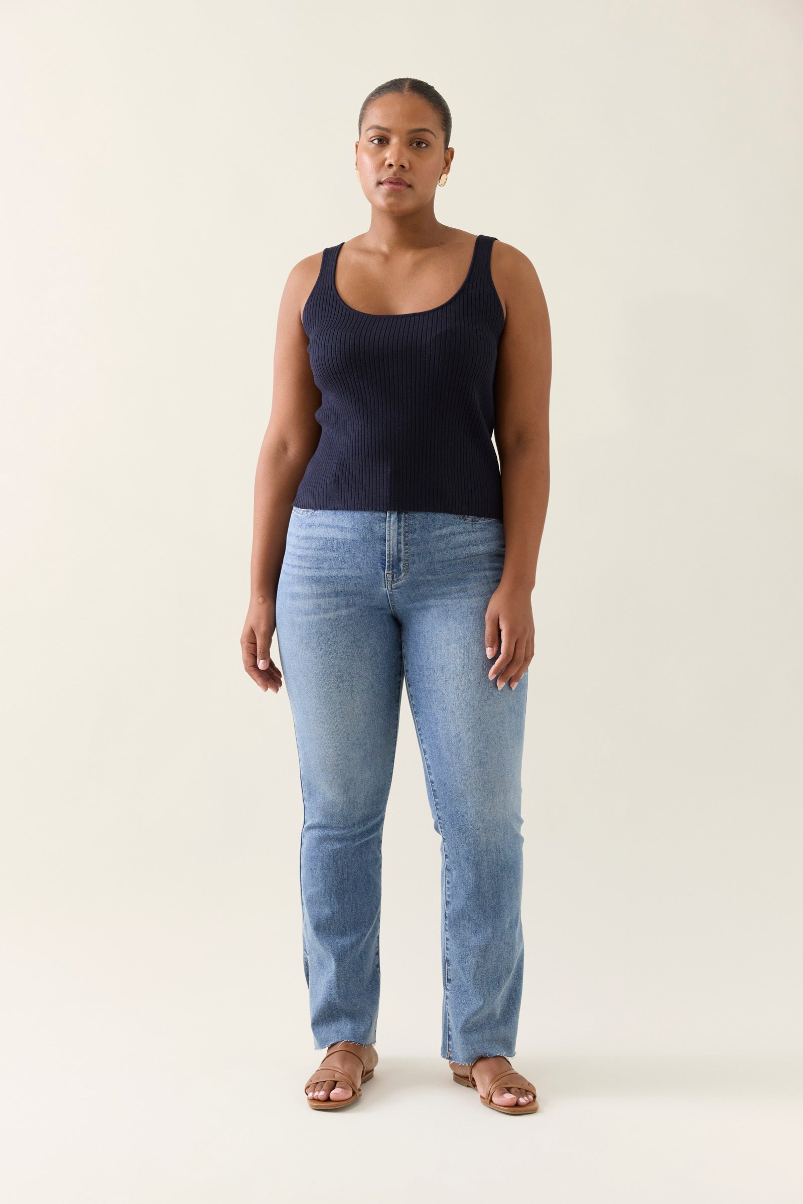 The staple of the season, the Adele Tank is a ribbed knit style with a flattering scoop neckline and a slightly cropped cut. Its generous stretch ensures comfort while keeping shape.