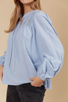 Achieve the perfect weekend style with the Aphrodite Blouse. Crafted with a linen blend, its relaxed fit offers a breezy, effortless vibe that complements your seasonal wardrobe. Featuring a flattering V-neck, a self-fabric tie, delicate lattice lace trim, and graceful balloon sleeves, this blouse pairs effortlessly with everything from fitted midi skirts to casual denim jeans or tailored trousers for a chic, laid-back look.