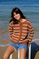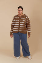 Juno Stripe Jumper/Cardigan - Toffee