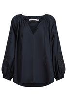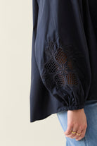 The Nilsa Blouse is a timeless wardrobe favourite. Made from cotton poplin with delicate cutwork embroidery and featuring tie detailing at the neckline. This blouse gives both a flattering shape and elegant coverage.