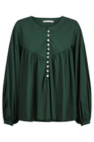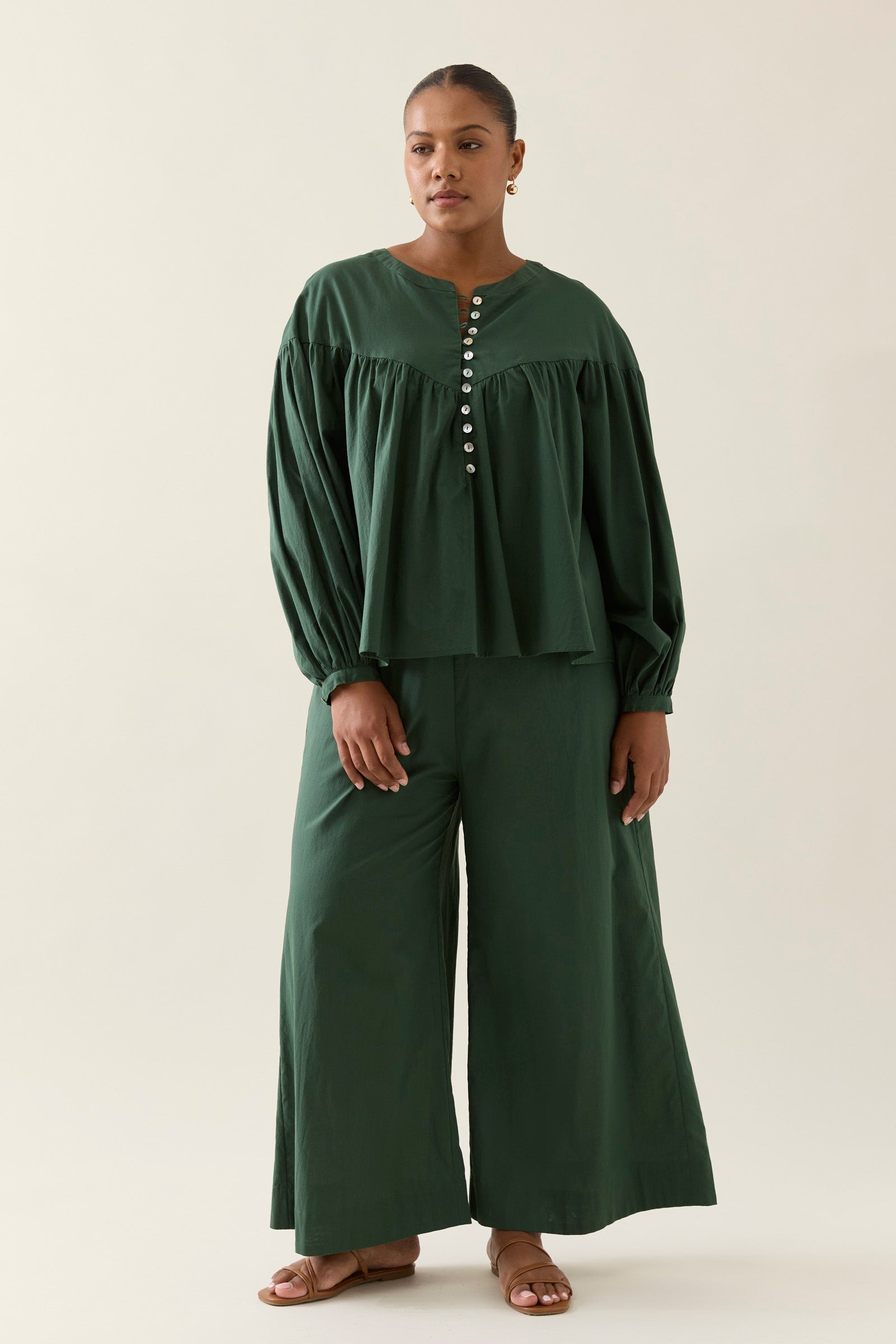 Crafted from breathable cotton voile, the Aurora Button Blouse is an airy long-sleeved piece with gathered yoke detail and delicate shell buttons. Lightweight and elegant, it provides effortless coverage from the sun.