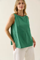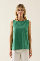 Crafted from 100% cotton, the Edith Tank features a boat neckline, four-panel front detail with topstitching, and a centre back seam with a patch detail and topstitching. A flattering sleeveless cut that fits beautifully at the armholes.