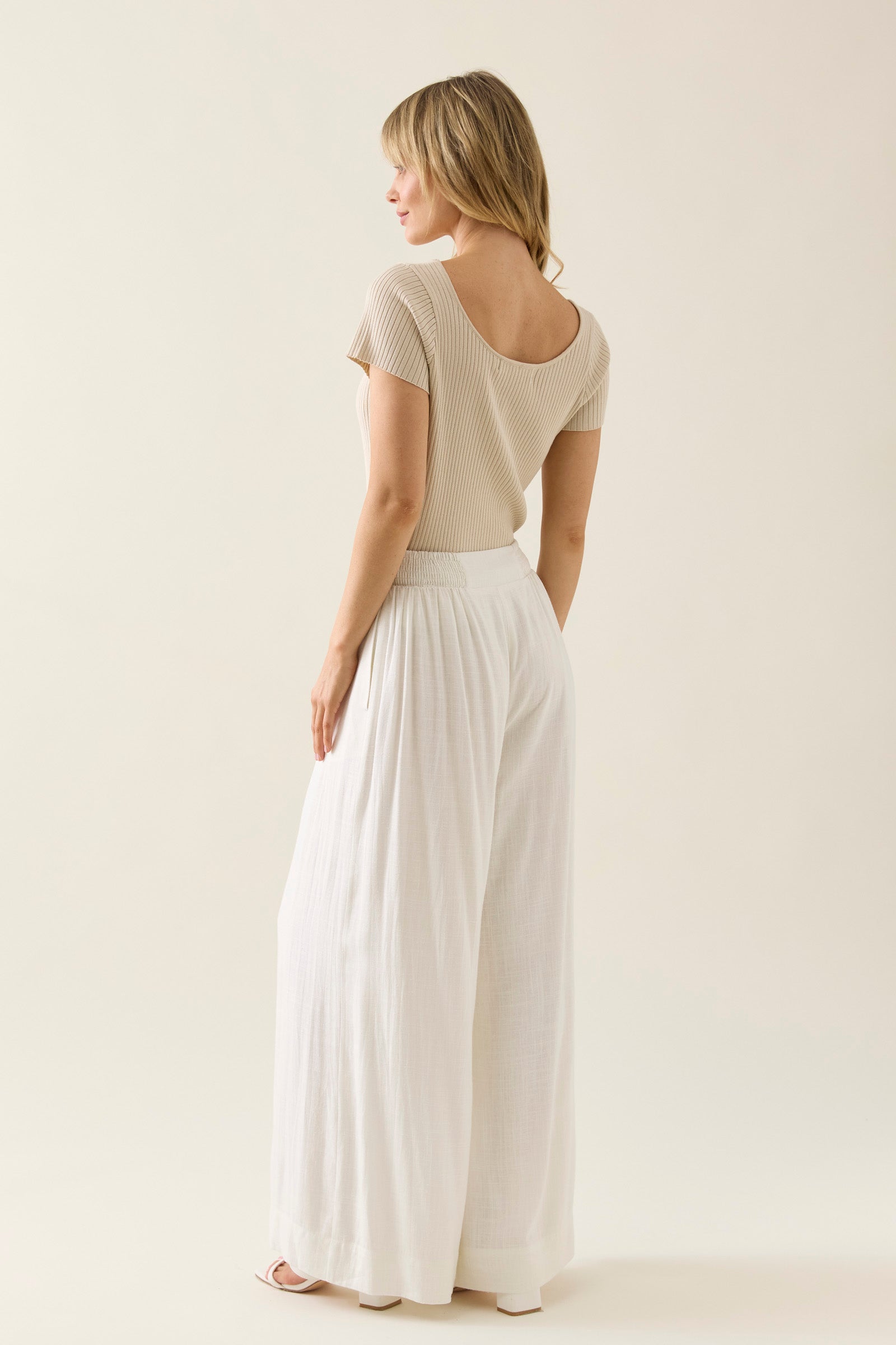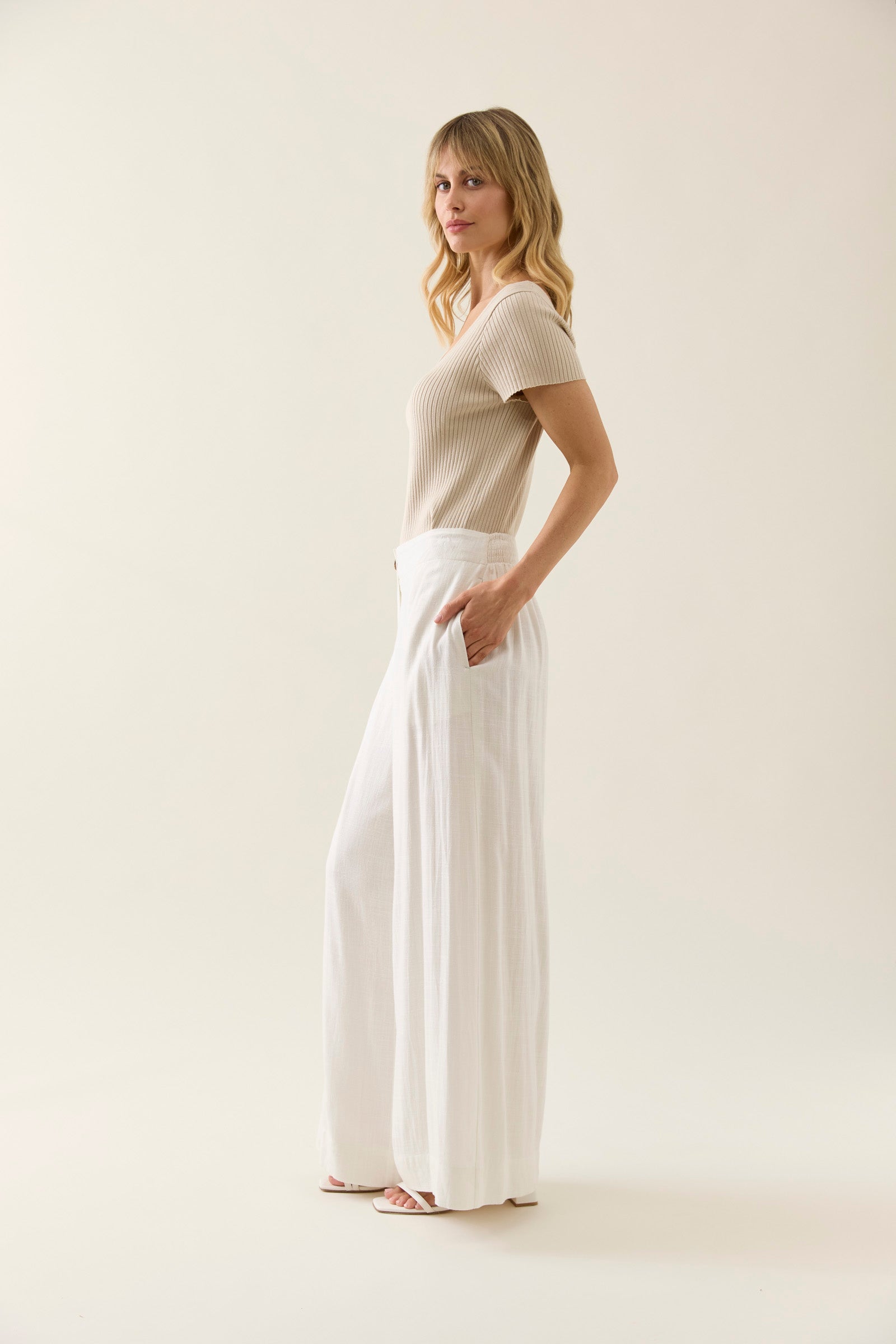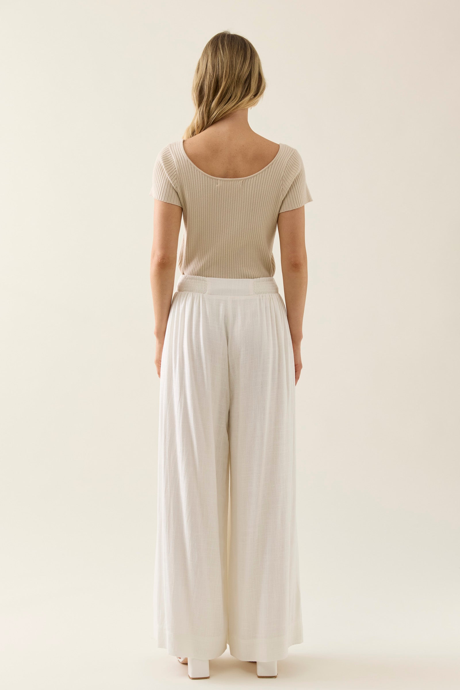 A timeless summer staple, the Ingrid Pant is crafted in a breathable linen blend with a full-length, wide-leg silhouette. The high waist features a fly front with a shell button and internal hook and bar closure.