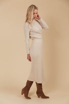 Ditch the pants and opt for the stylish Juno Knit Skirt! Crafted in a rib knit fabric, this sleek, semi-fitted design flatters with a streamlined silhouette and a mid-calf length. The elastic waistband ensures a comfortable fit, while its versatile design pairs beautifully with a coordinating top, a tailored blouse, or a soft knit. The Juno Knit Skirt is the perfect blend of comfort and sophistication.