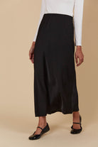 An elegant wardrobe staple, the Maia Midi Skirt features a refined bias cut crafted from luxurious recycled polyester. Its versatile nature ensures seamless transitions between casual coffee outings, professional meetings, romantic evenings, and more. The timeless silhouette is complemented by a comfortable elastic waistband, while its mid-calf length adds a touch of effortless sophistication.