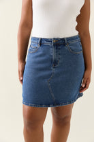 A modern wardrobe essential, the Margot Denim Skirt is made from stretch cotton denim with a high waist and mini length. Designed with a fly front, belt loops, and five functional pockets, and finished with branded button and a leather brand tab.