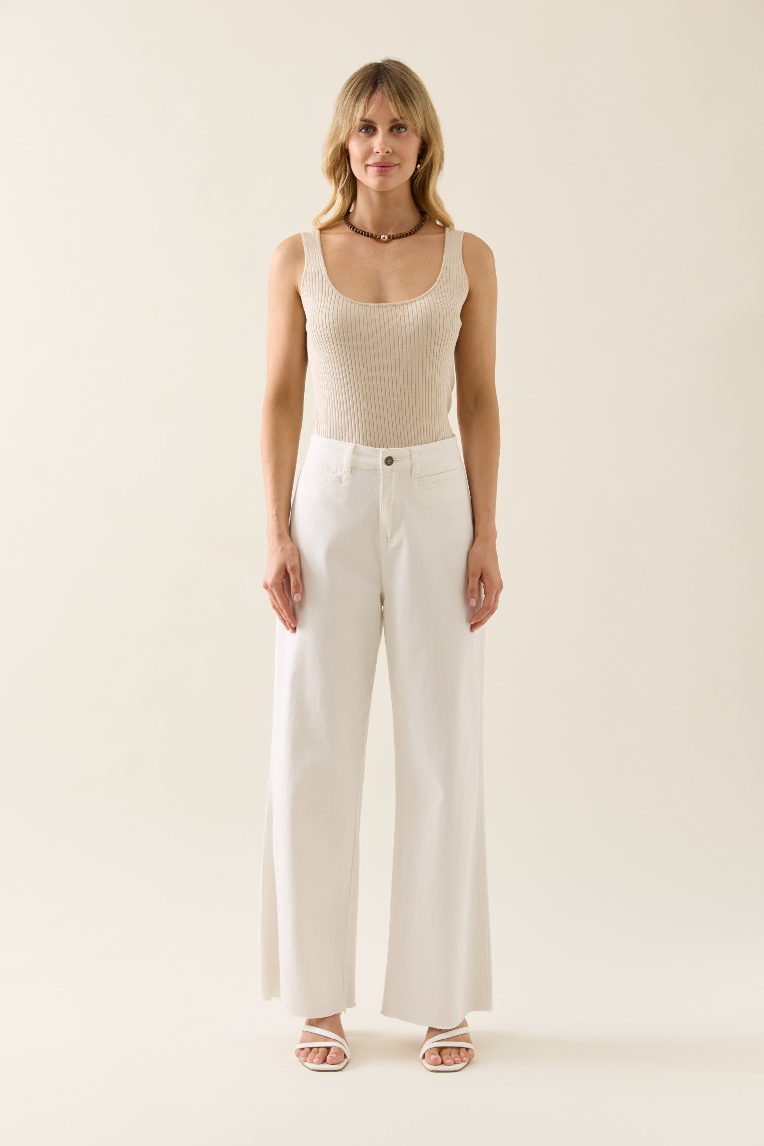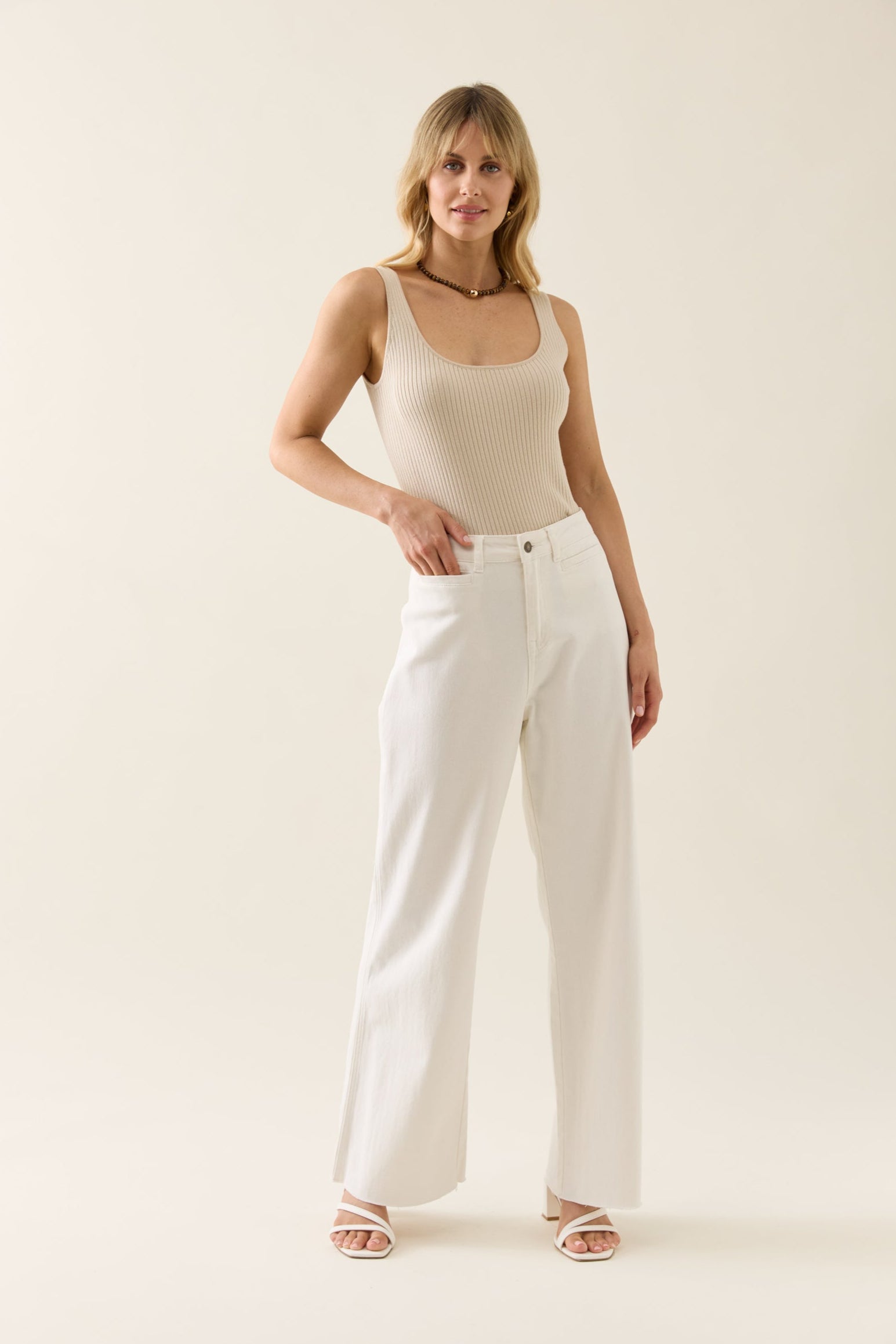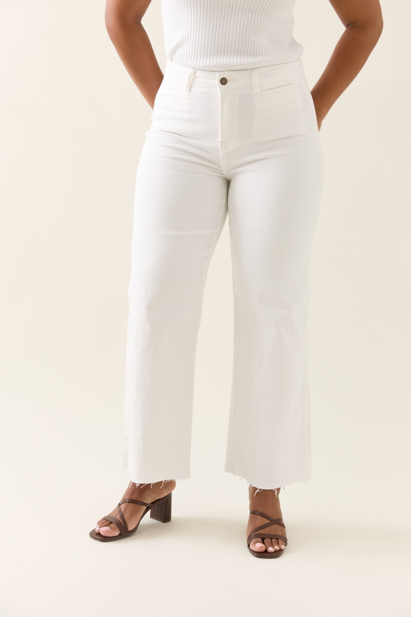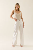 Say hello to your new favourite denim jeans! The Tate Denim is guaranteed to make an impression - with a classic wide-leg silhouette and a mid-rise fit, these denim jeans provide an effortless look that will complement any outfit. It features a button and zip closure with pockets and a raw edge ready for any occasion. Style it with a tank, cape and glam accessories for cocktails with the girls or a soft knit and sneakers while you run errands.