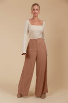 The Venus Pant offers a tailored touch to your everyday look. These pants are expertly crafted from a quality linen blend, providing a flattering and timeless fit. A concealed hook and zip closure and a half-elastic waist offer the perfect combination of comfort and style. The full-length design and wide leg create an elegant silhouette. Whether paired with a matching top or mixing seamlessly with other wardrobe staples, these pants are a chic and versatile addition to any outfit.