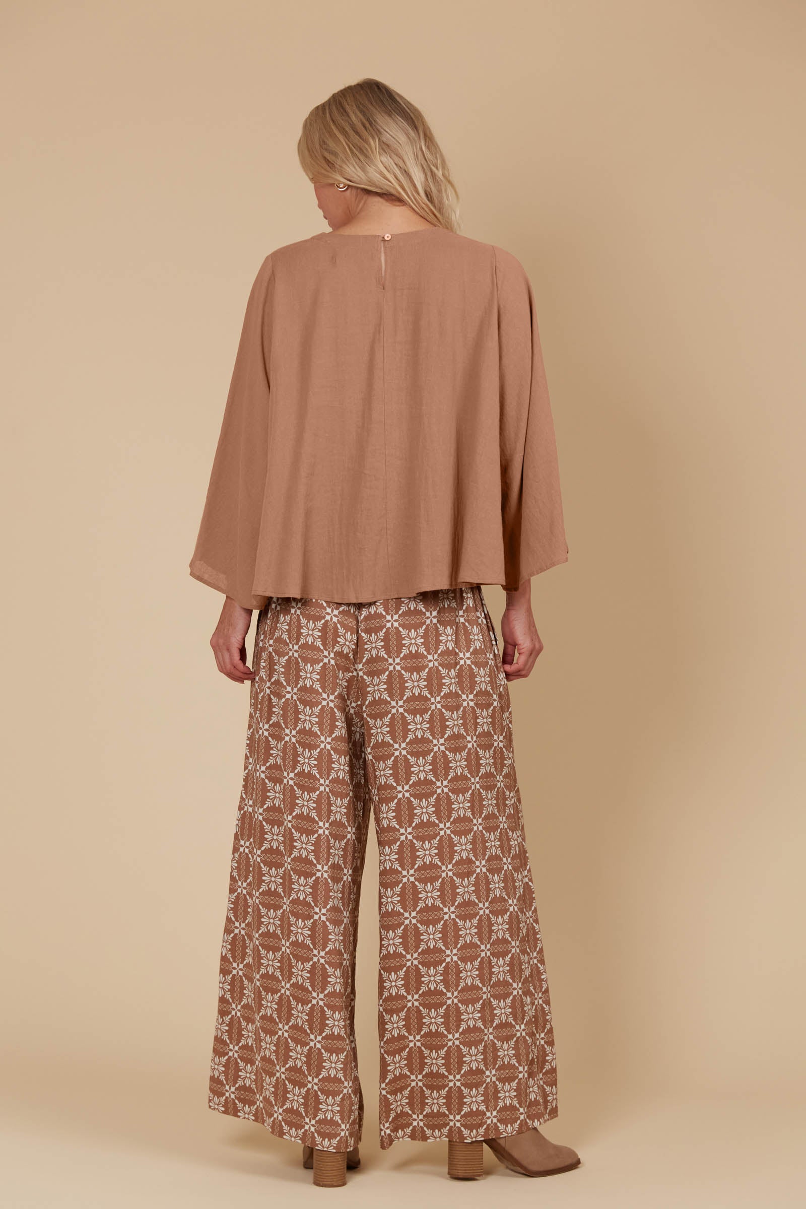 Meet the Venus Top, the versatile piece your wardrobe has been waiting for. Pair it with linen trousers for a polished look, a fitted midi skirt to highlight its shape, or your favourite denim jeans for a relaxed vibe. Its round neckline flows into a soft, flattering drape, while breezy bell sleeves and a flowing hemline add charm and movement.
